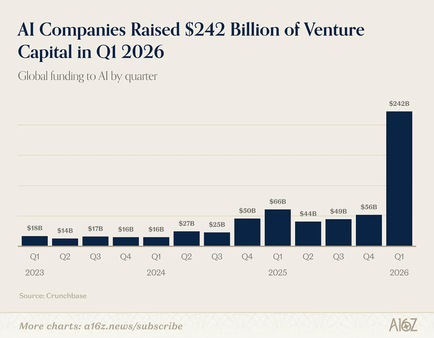 A staggering 65 percent of it ($188 billion) went to just four companies, Anthropic, Open AI, Waymo and xAI.