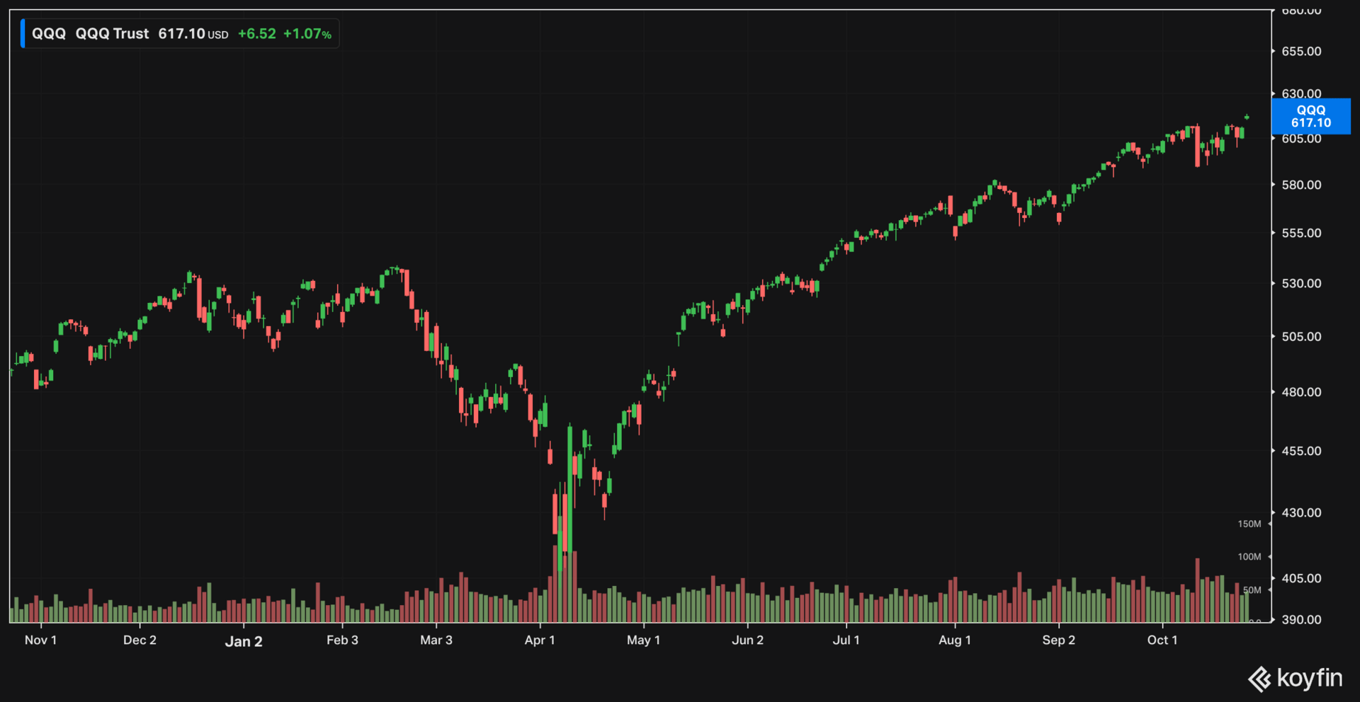 I have been focused on the price action of $GOOG ( ▲ 2.67% ) , $AAPL ( ▲ 1.25% ) and interest rates which have been giving a green light to higher prices the last few weeks.